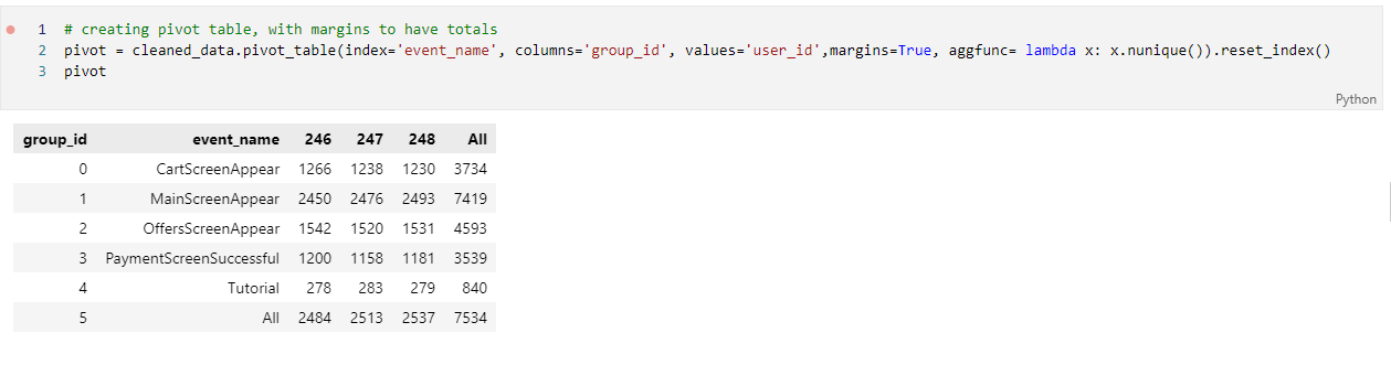 A Startup sells food products. Investigate user behavior for the company’s app.